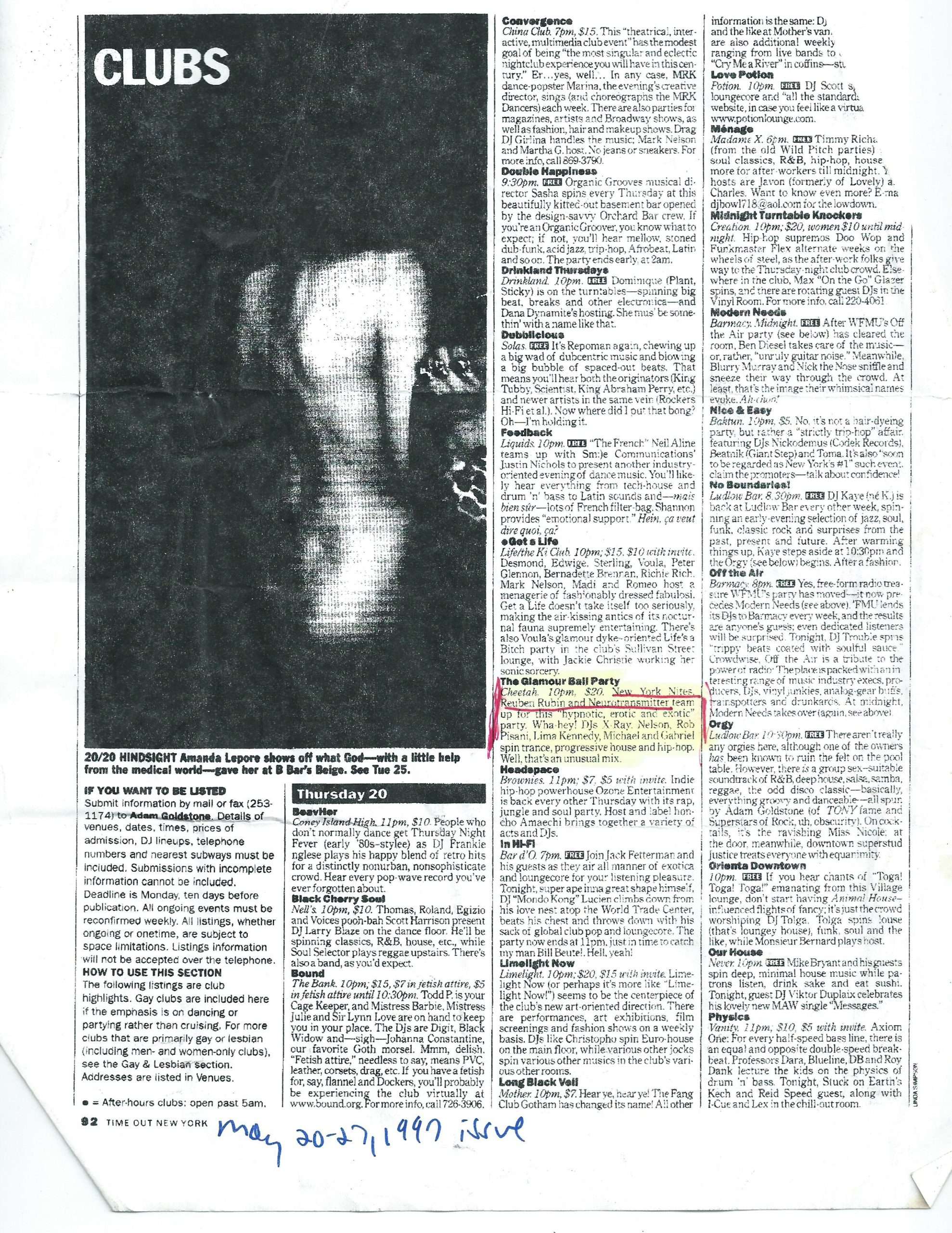Cheetah at 10:00 PM $20 New York Nites Reuben Rubin and Neurotransmitter team up for this “hypnotic erotic and exotic party” wa-hey DJ X-ray Nelson Rob Pisani Liam Kennedy Michael and Gabriel spin trance progressive house and hip hop Well that’s an unusual mix!