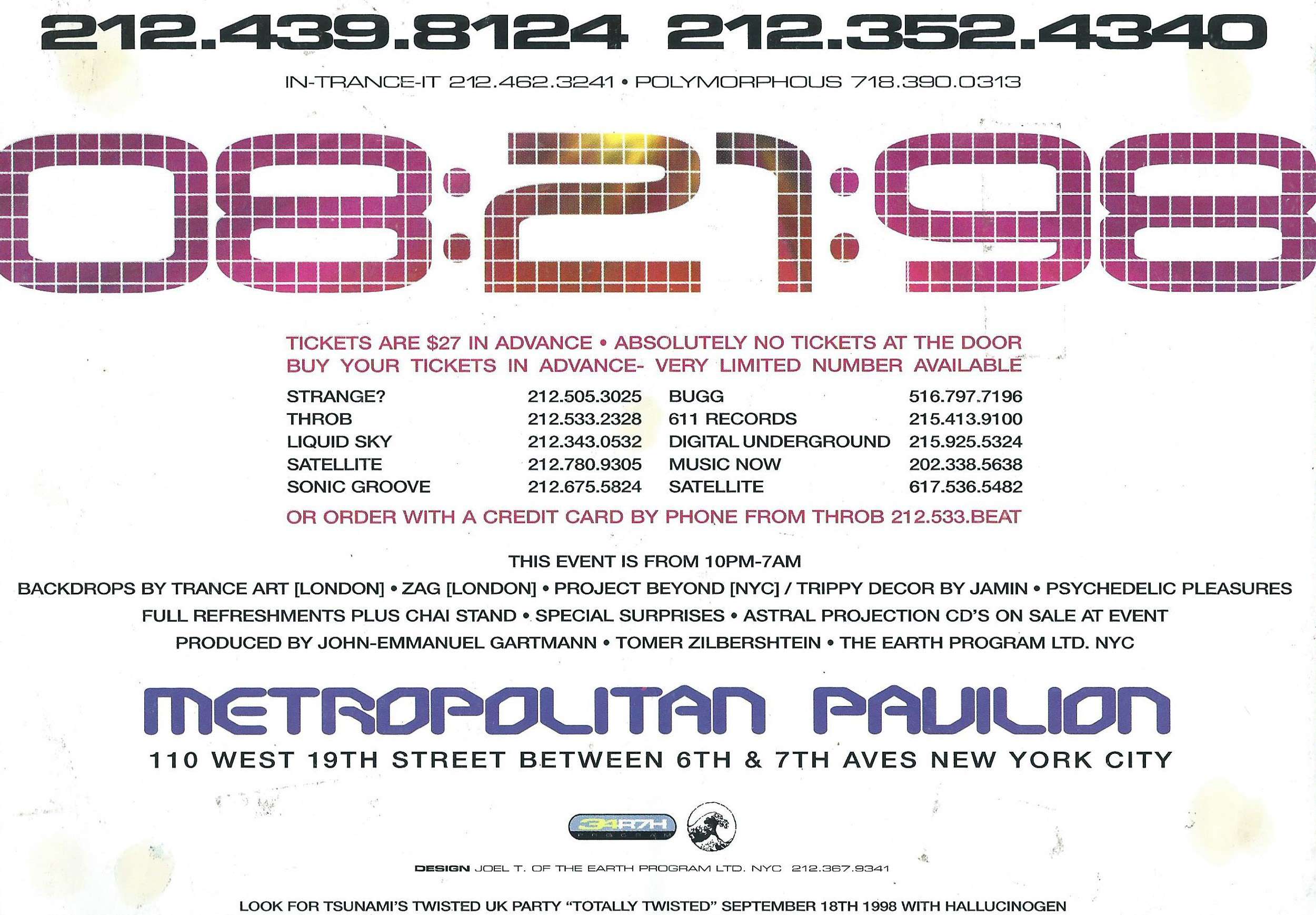 Acid Physix did a few parties in the back room at Twilo that were full on trance parties this had to be in 96-98.. I don’t recall exactly when, but Matthew at Neuronautics Institute worked at 2 of them I believe…….
