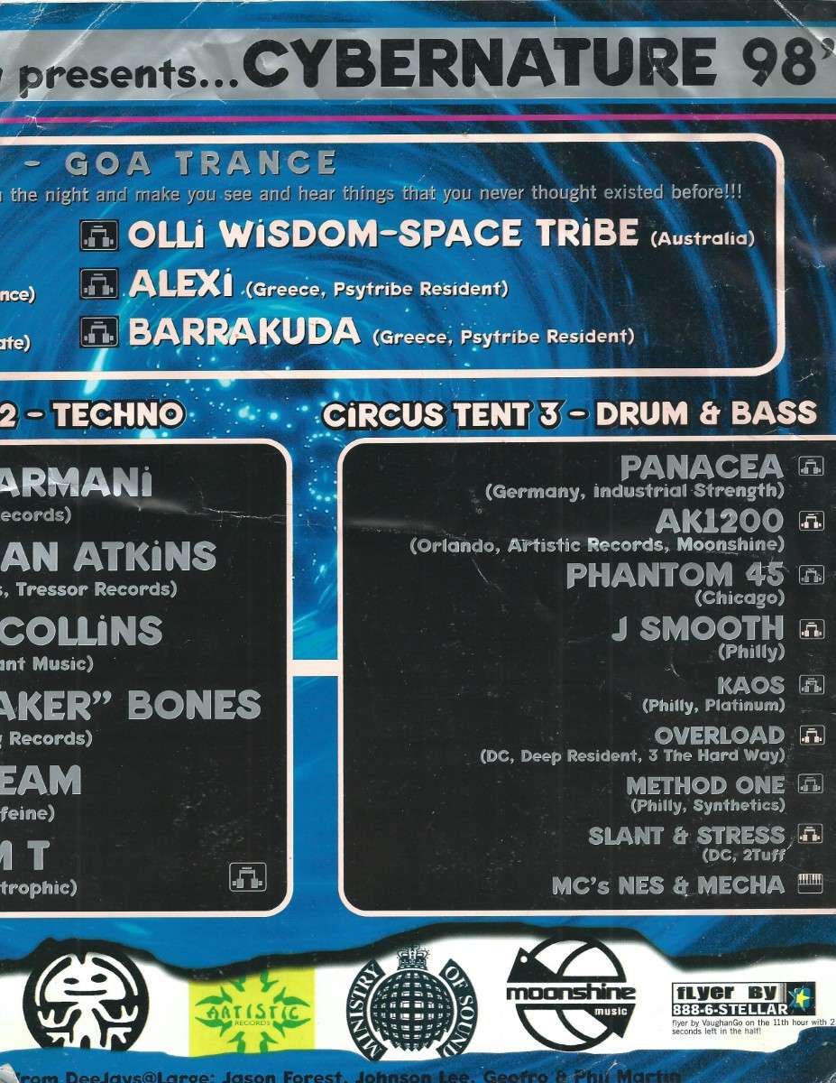 Atomic Records UK Celebrating their first CD compilation Oforia (Dragonfly, London/Atomik UK Dino Psaras (Psydonia/Atomic UK/Blue Room) Miss Domino (Equinox, Tokyo) Matthew Magic Backdrops & Decor: Moonwalker (Bali) Severyn, Jamin, Psychedelic Pleasures at Vinyl