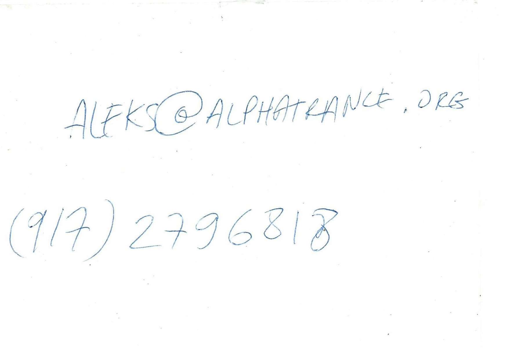 Live set by Alchemy, NYC FX Mike Ranka SubtleChaos (Vadim + Jason) iXOM Flyer by DONDesign (misha at alphatrance.org) Cover: $12 w/flyer/this email printed out per person, $15 w/out Location: …that’s 40′ EAST of the southeast corner of 40th and 9th avenue; there is an unmarked door with stickers on it – knock loudly on it. Time: 11:00 pm – 8:00 am Brain “research” by Dmitri/BrainMachines Coffee, chai and water will be served; + some snacks in the morning. Good Luck and we’ll see you this Friday! aleks at alphatrance.org