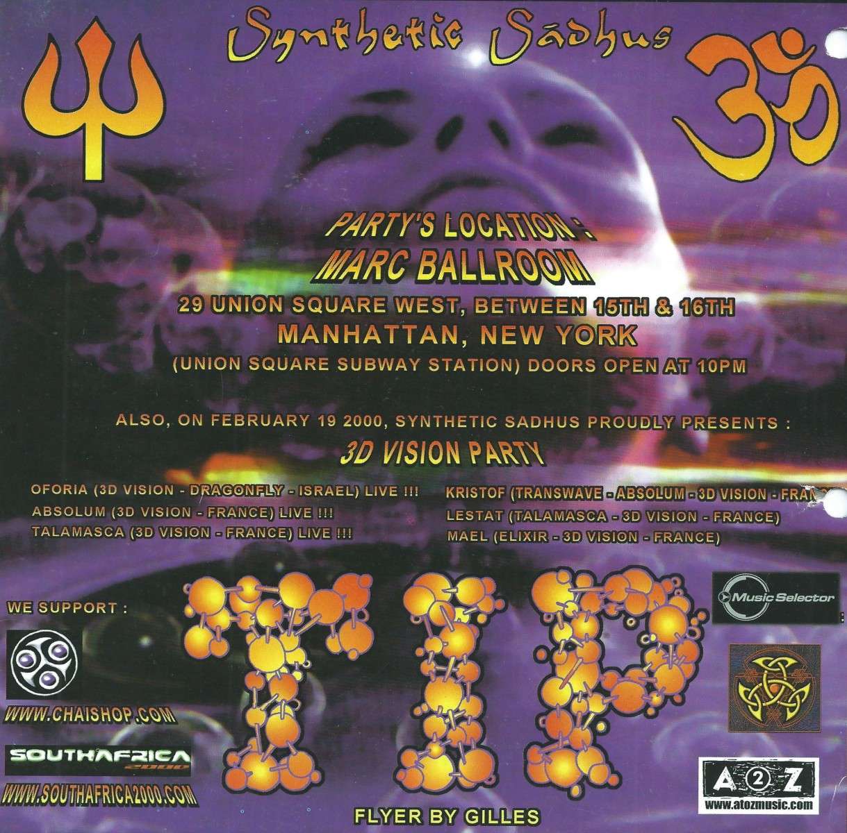 Mind-blowing fluoro deco by Synthetic Sadhus – Krisz – NYC Jamin – Severyn, NYC – Moonwalker (Bali) Chai tent, body painting, massage tent, goa clothing, and accessories market. $23 in advance/ 25$ at door Marc Ballroom 29 Union Square West (between 15th & 16th St.) Synthetic Sadhus 212.774.7728