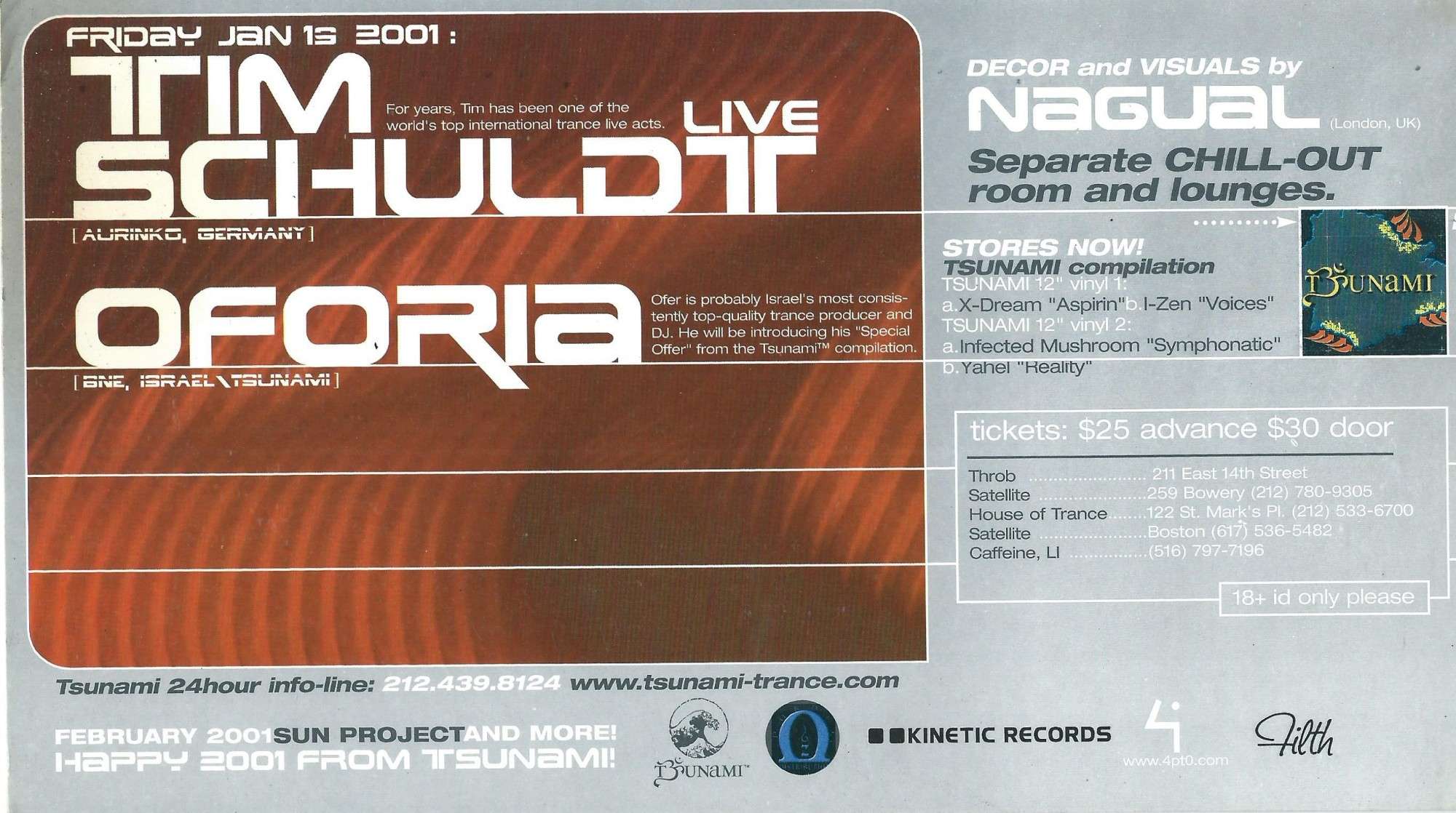 TIM SCHULDT live Aurinko, Germany OFORIA BNE, Israel/Tsunami Opher India drop purple oz/Tsunami Yare X NYC …and more! Octagon 555West 33rd 11pm-7am btwn 11th and 12th ave. tickets: $25 advance $30 door 18+ id only please