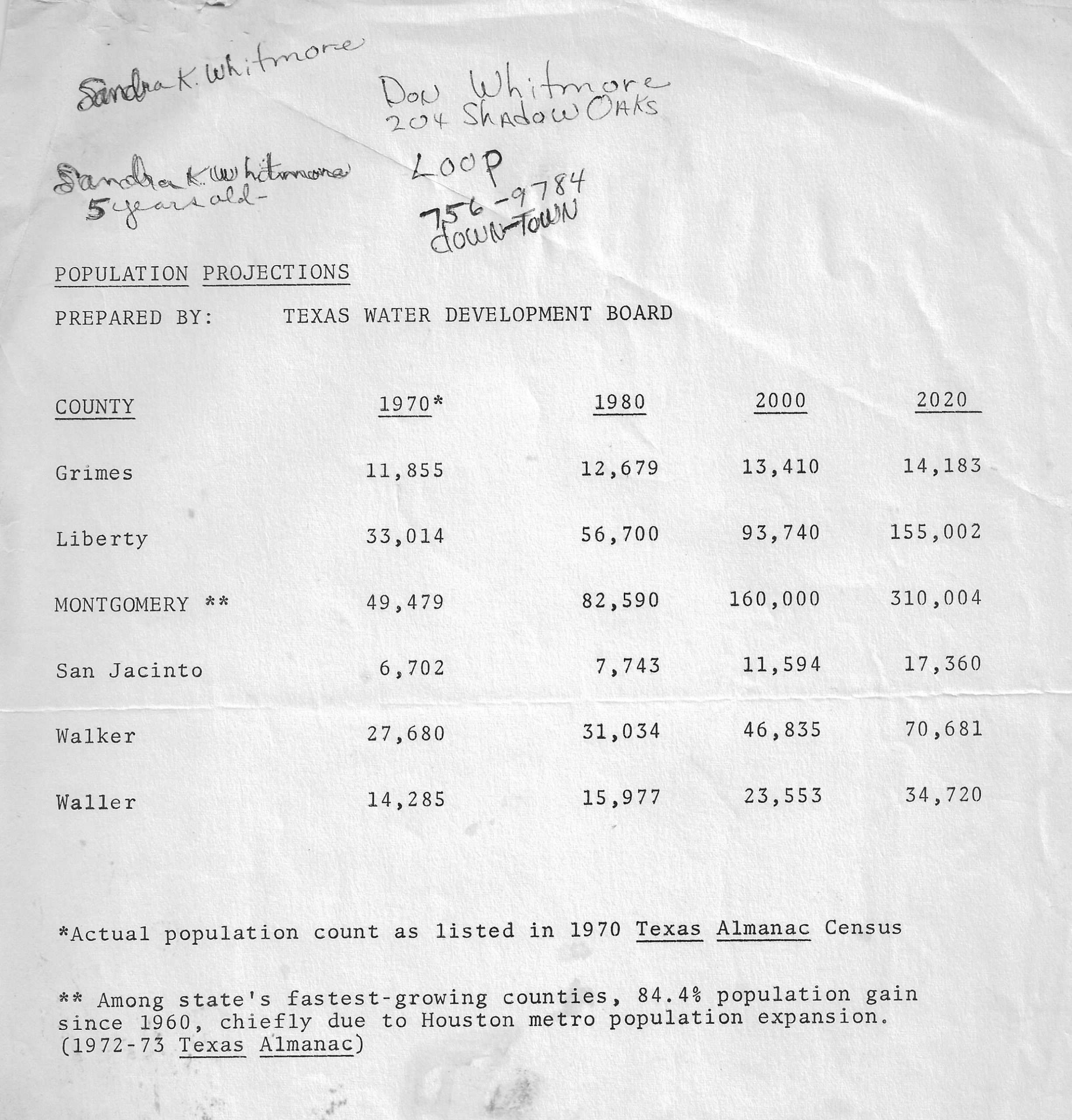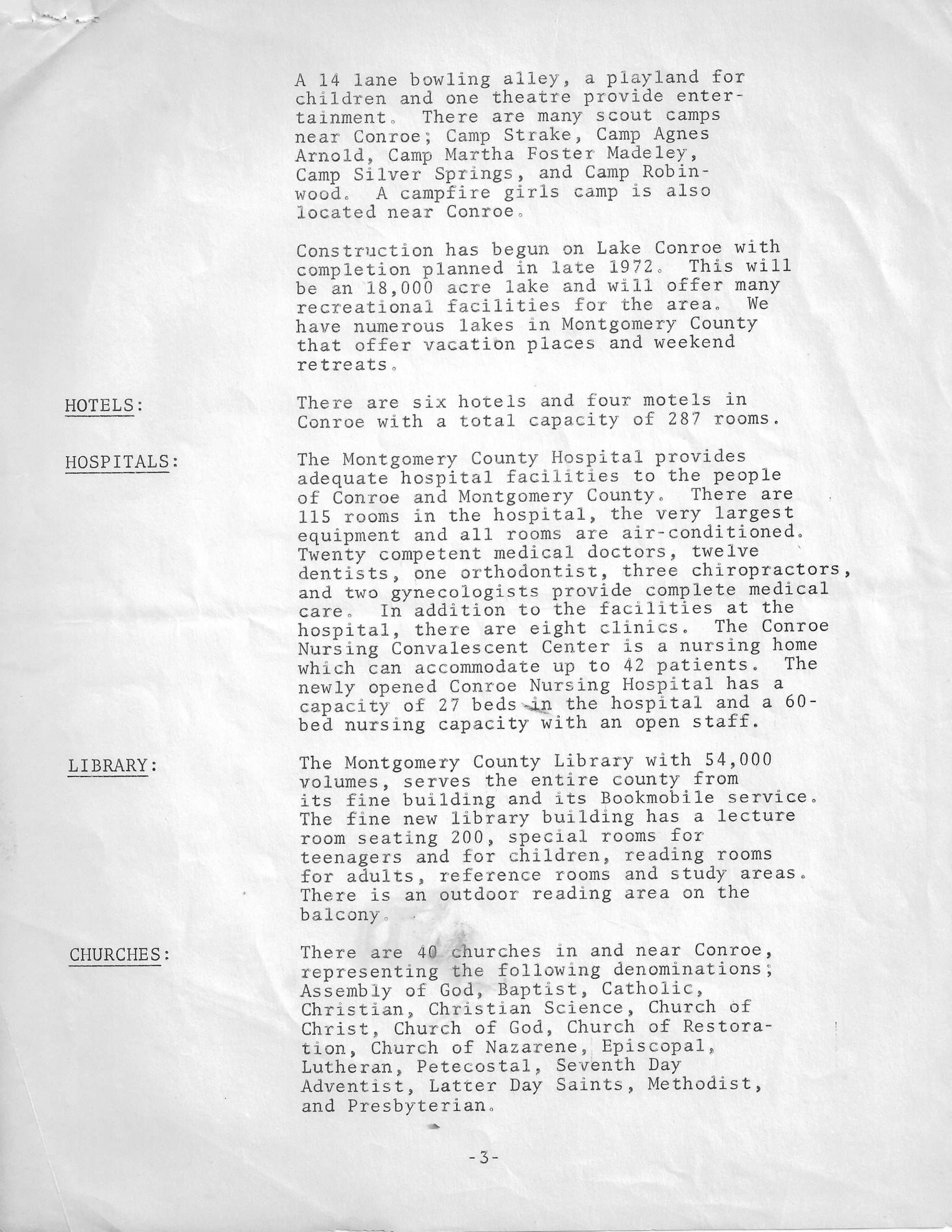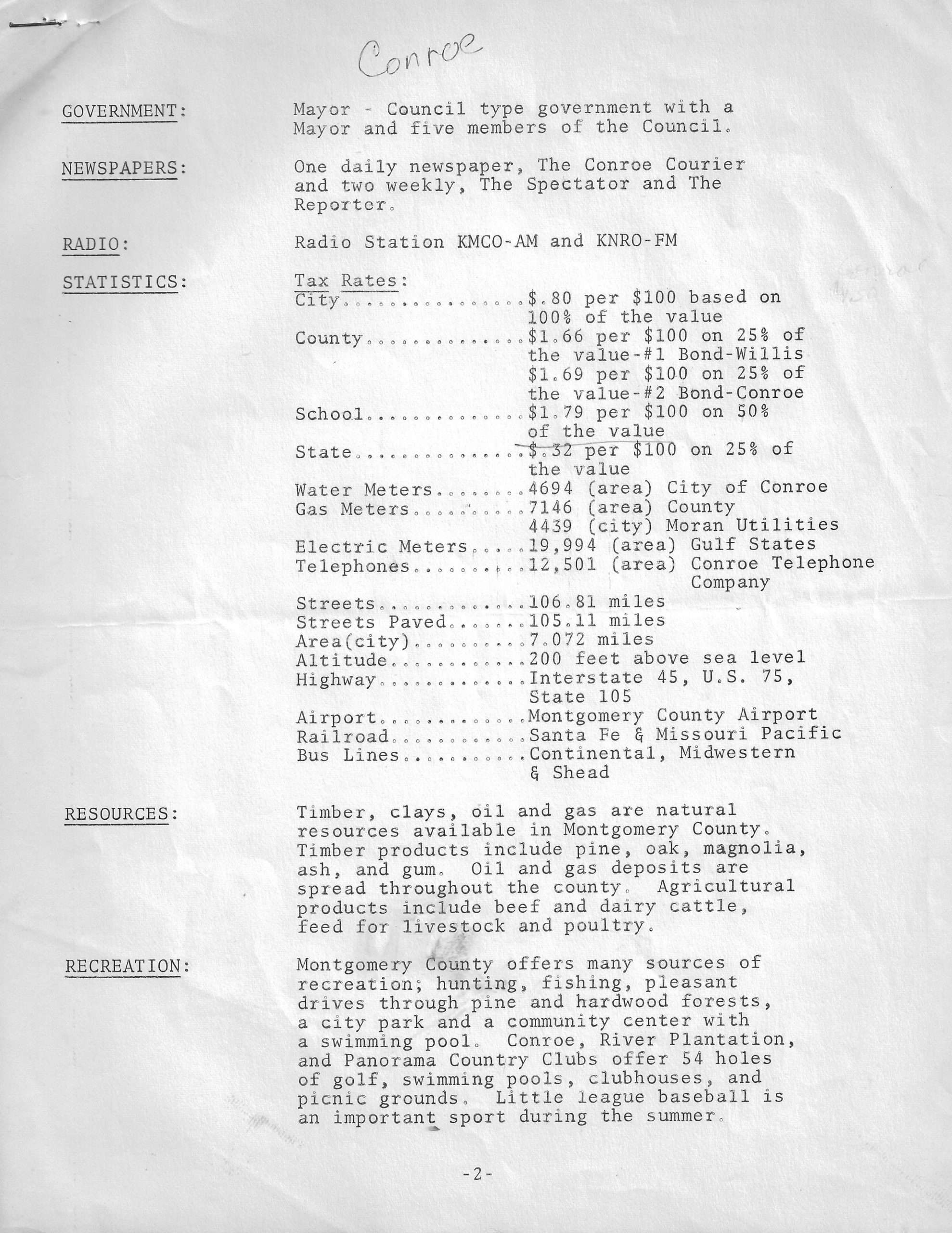 1971 Conroe fact sheet for businesses, visitors and potential arrivals